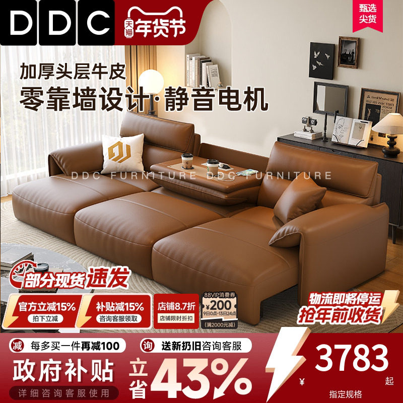 政府补贴DDC劳伦斯电动多功能真皮沙发客厅零靠墙头层牛皮沙发床