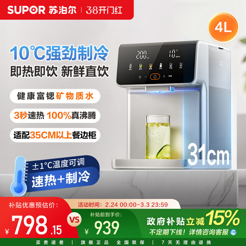 苏泊尔即热饮水机家用桌面台式小型净饮机直饮制冷制热一体机新款