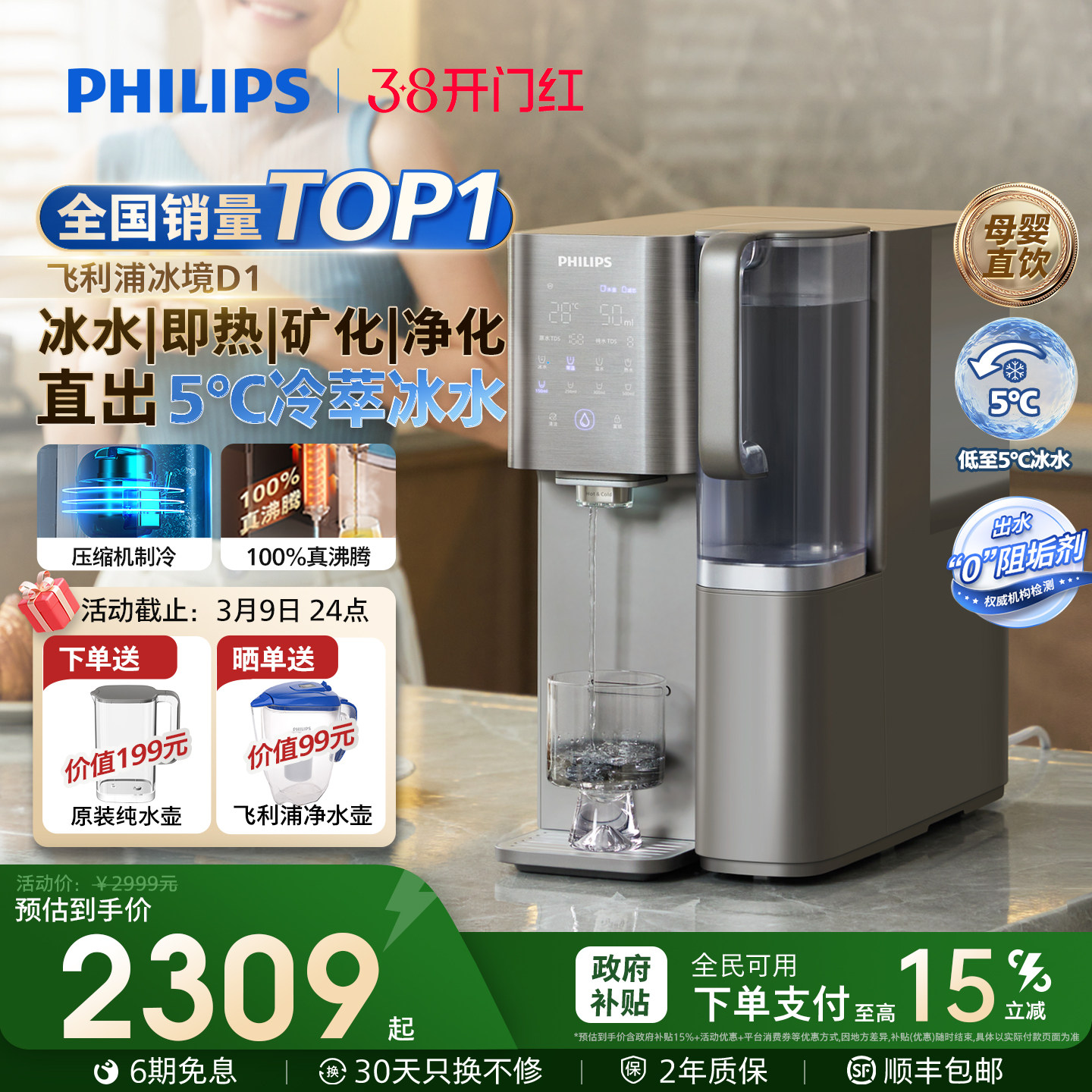 飞利浦即热饮水机家用净水器制冷冰水热水台式直饮净饮机冰境D1