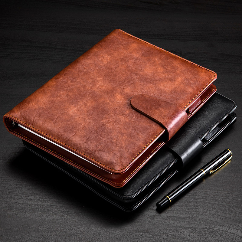 a5笔记本子文具a4超厚大号本子办公会议记录本大学生文艺精致工作日记本手账本皮面黑色b5简约商务记事本定制