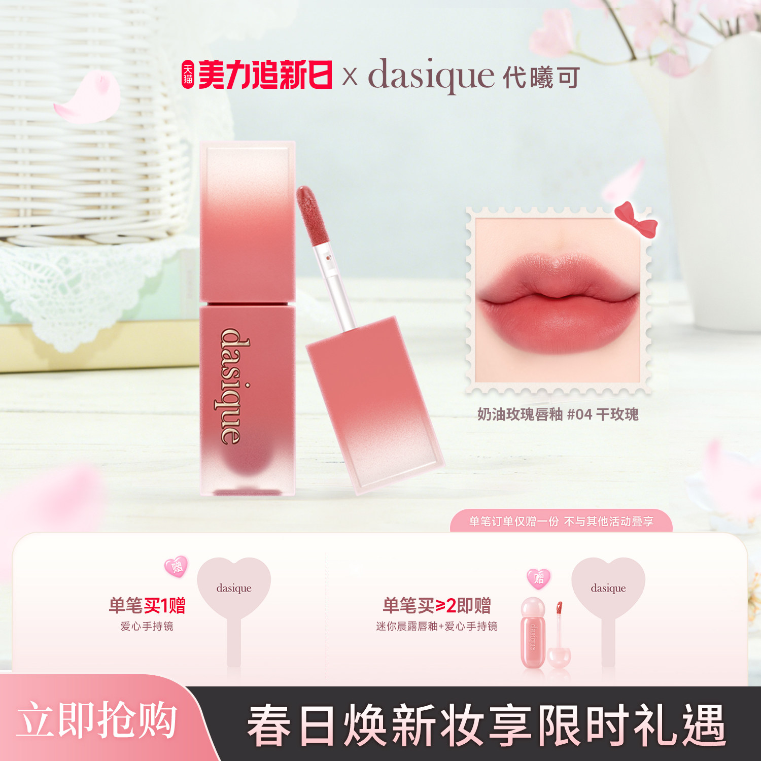 【韩国正品】dasique/代曦可奶油玫瑰唇釉丝绒持久口红雾面哑光