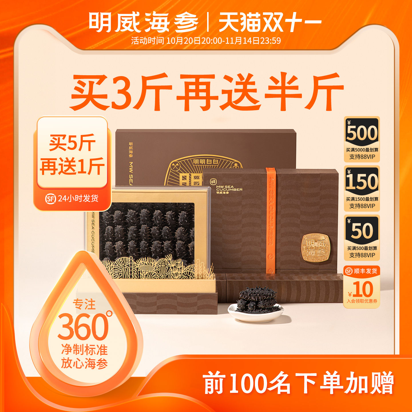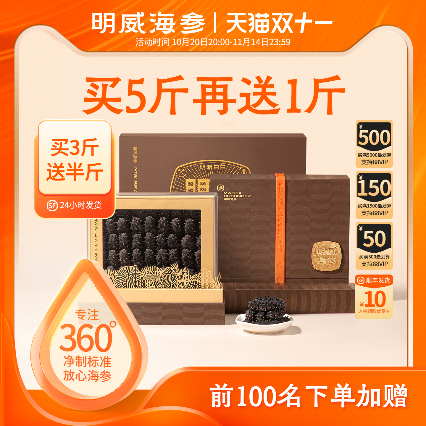 明威国标淡干海参干货底播辽刺参净制海参礼盒500g送礼官方旗舰店