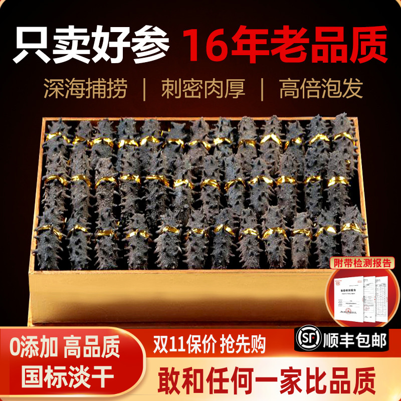 大连国标淡干海参15倍泡发纯底播海参干货礼盒装辽刺参实惠装孕妇