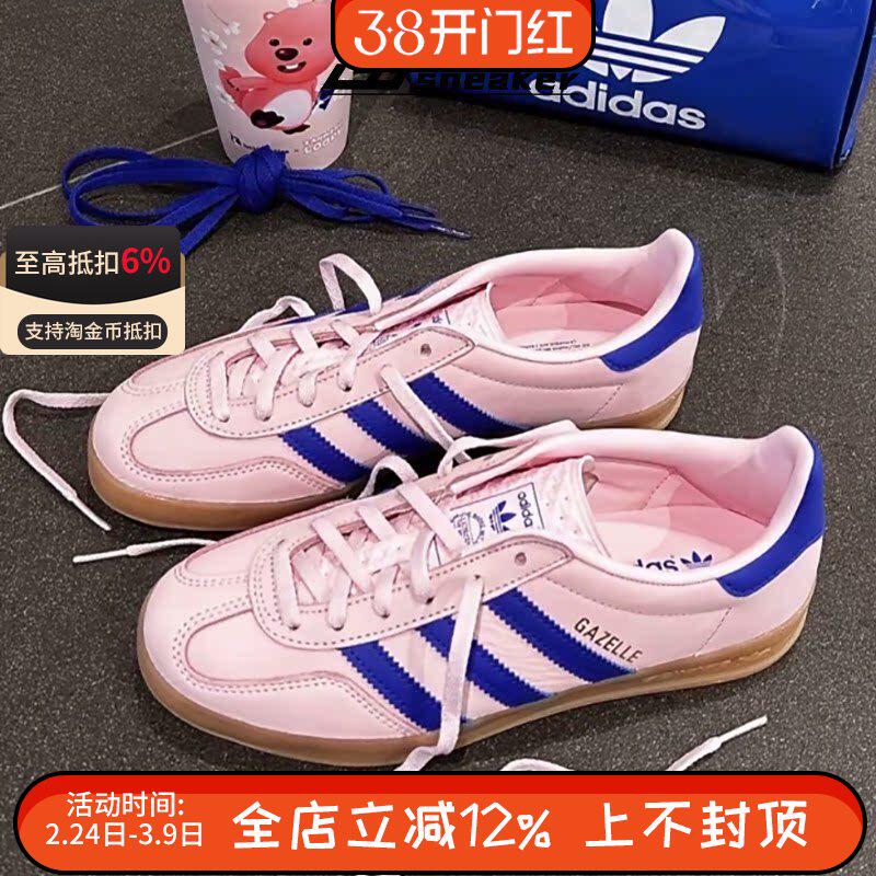 阿迪达斯三叶草Gazelle男女粉蓝色低帮休闲德训鞋T头板鞋 JI1371