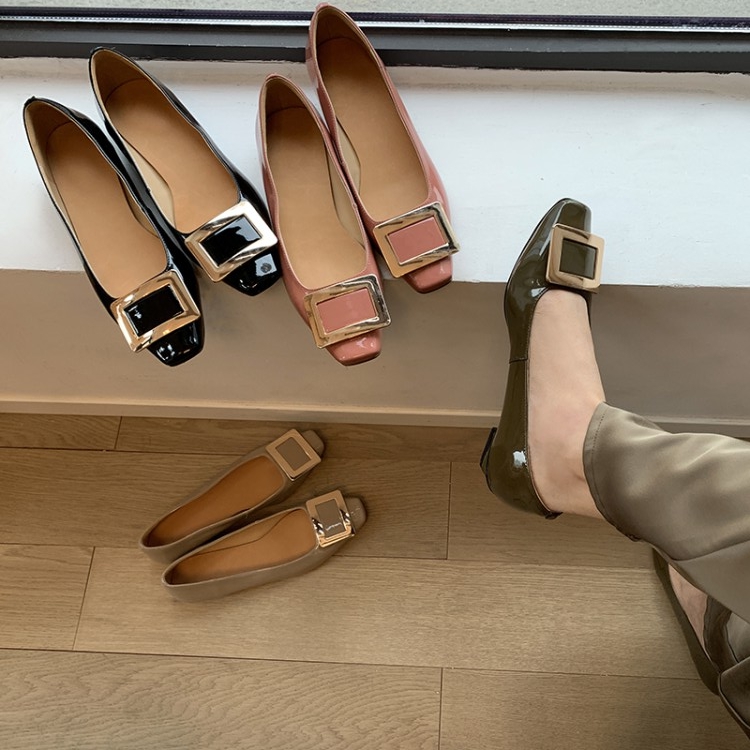 飞日订单~品质控B入!方扣女鞋漆皮方头单鞋春季低跟鞋真皮平底鞋