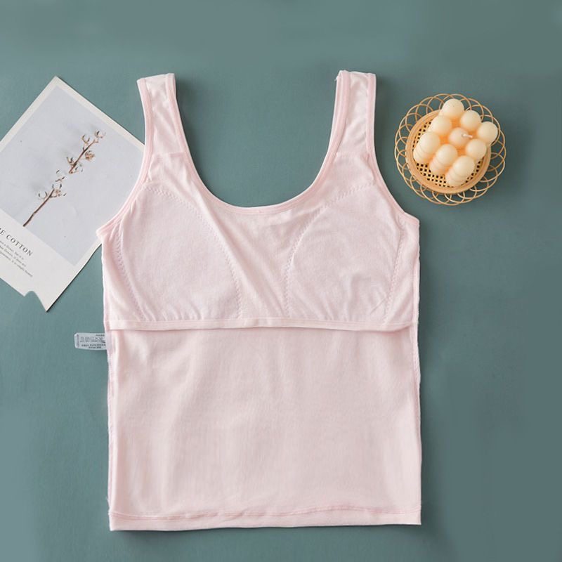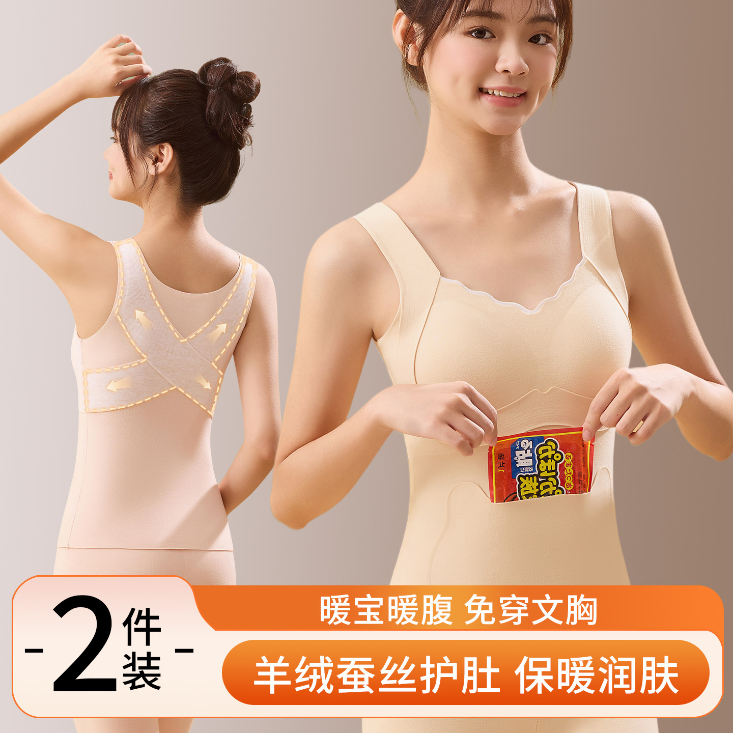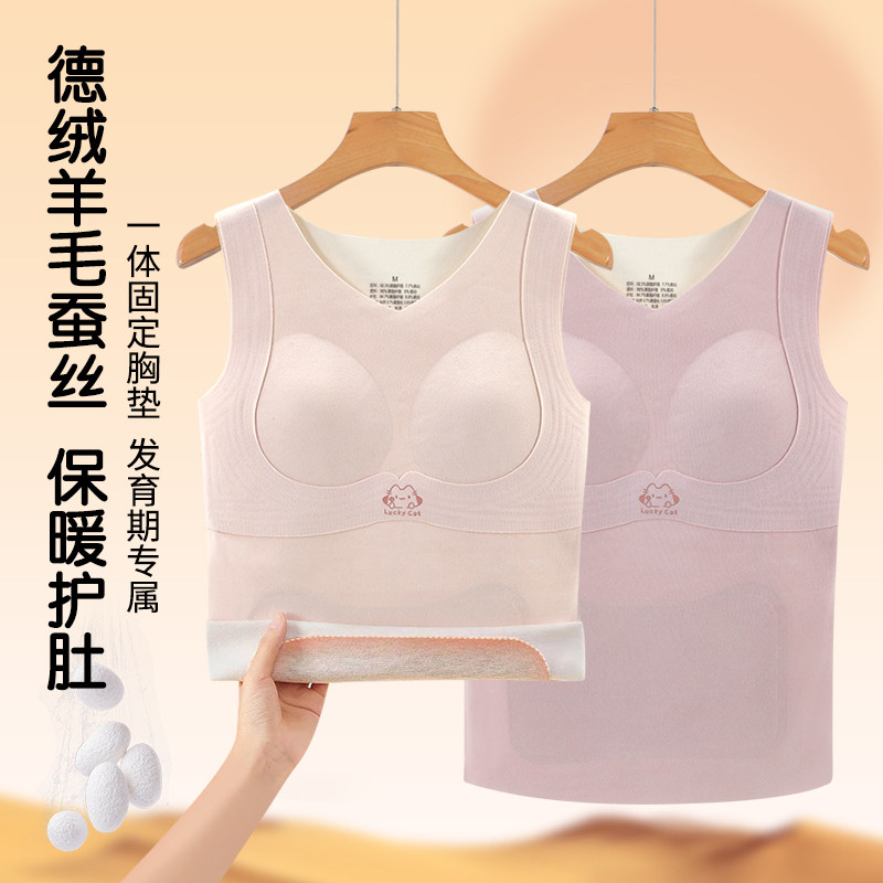 蕉婷发育期少女保暖背心带胸垫初高中学生内衣羊毛蚕丝内搭秋冬季