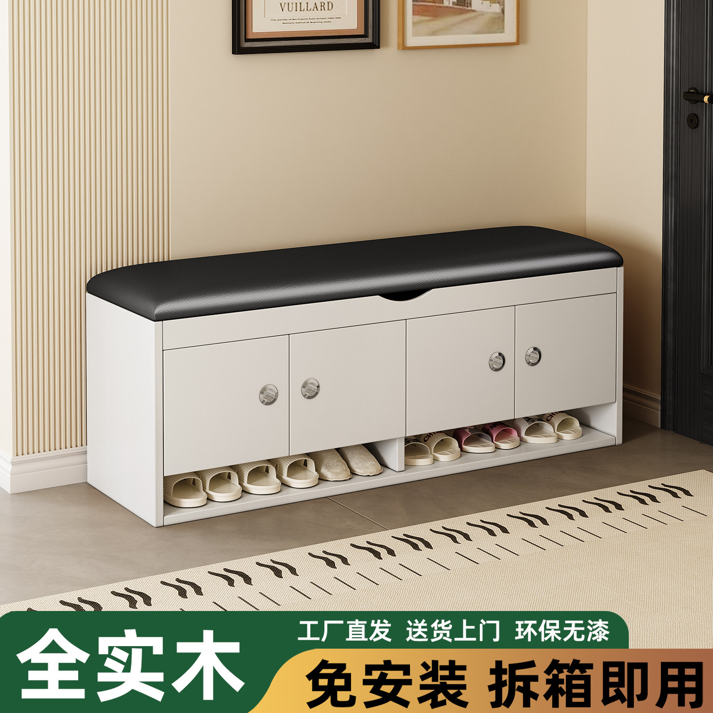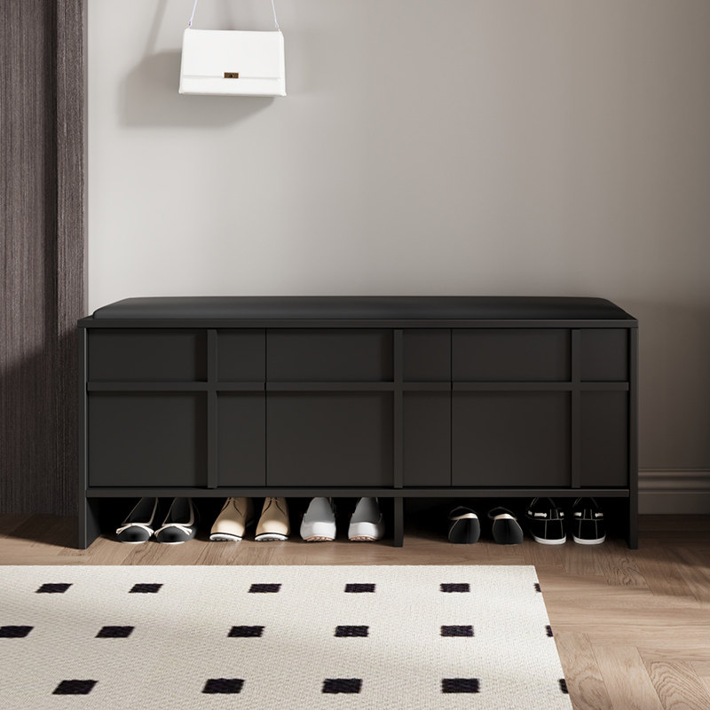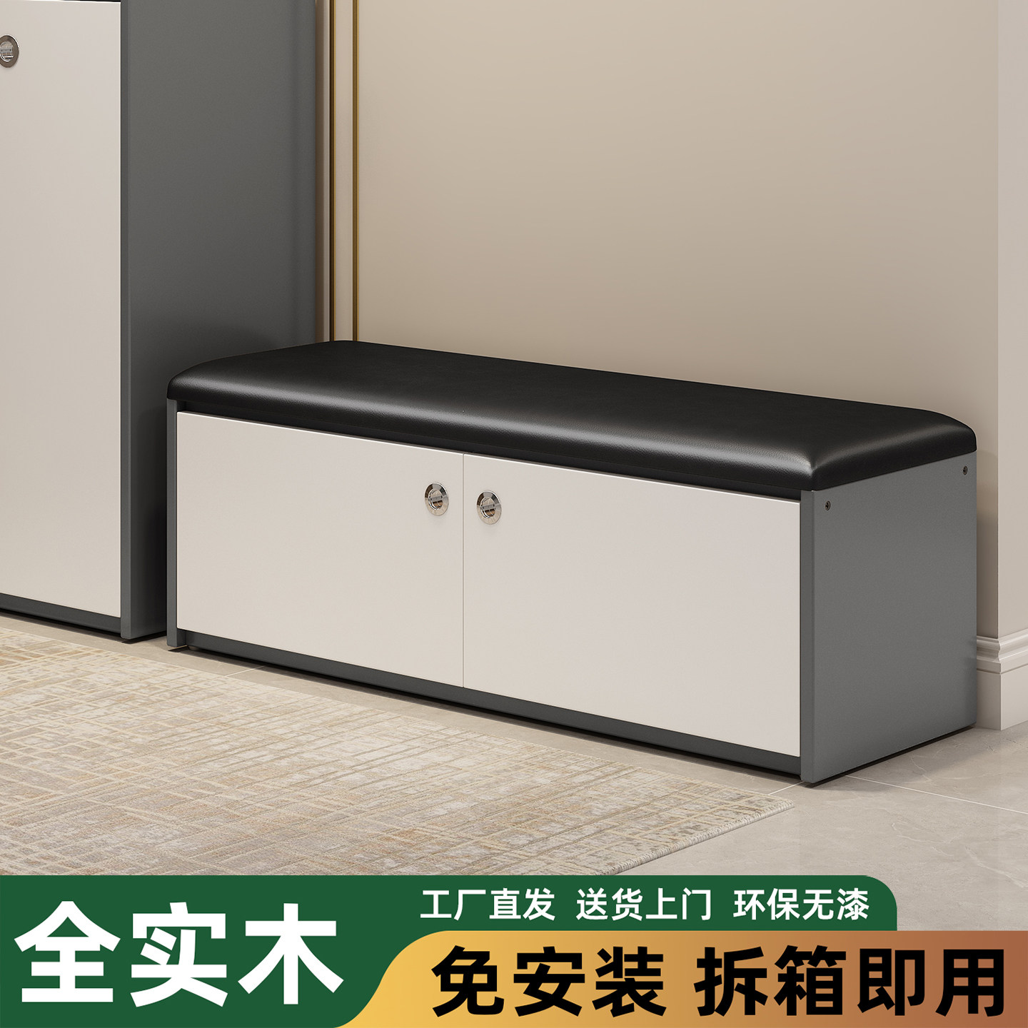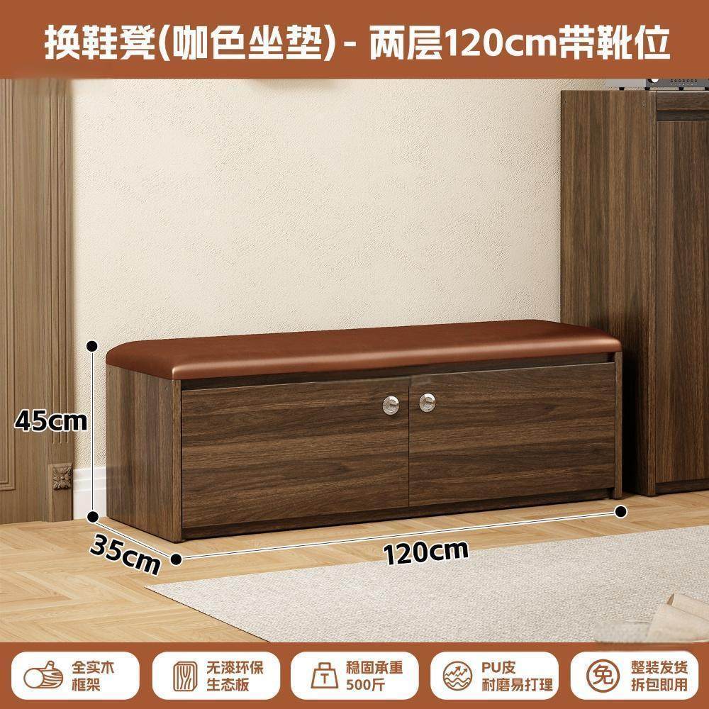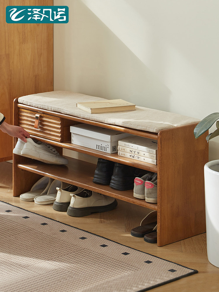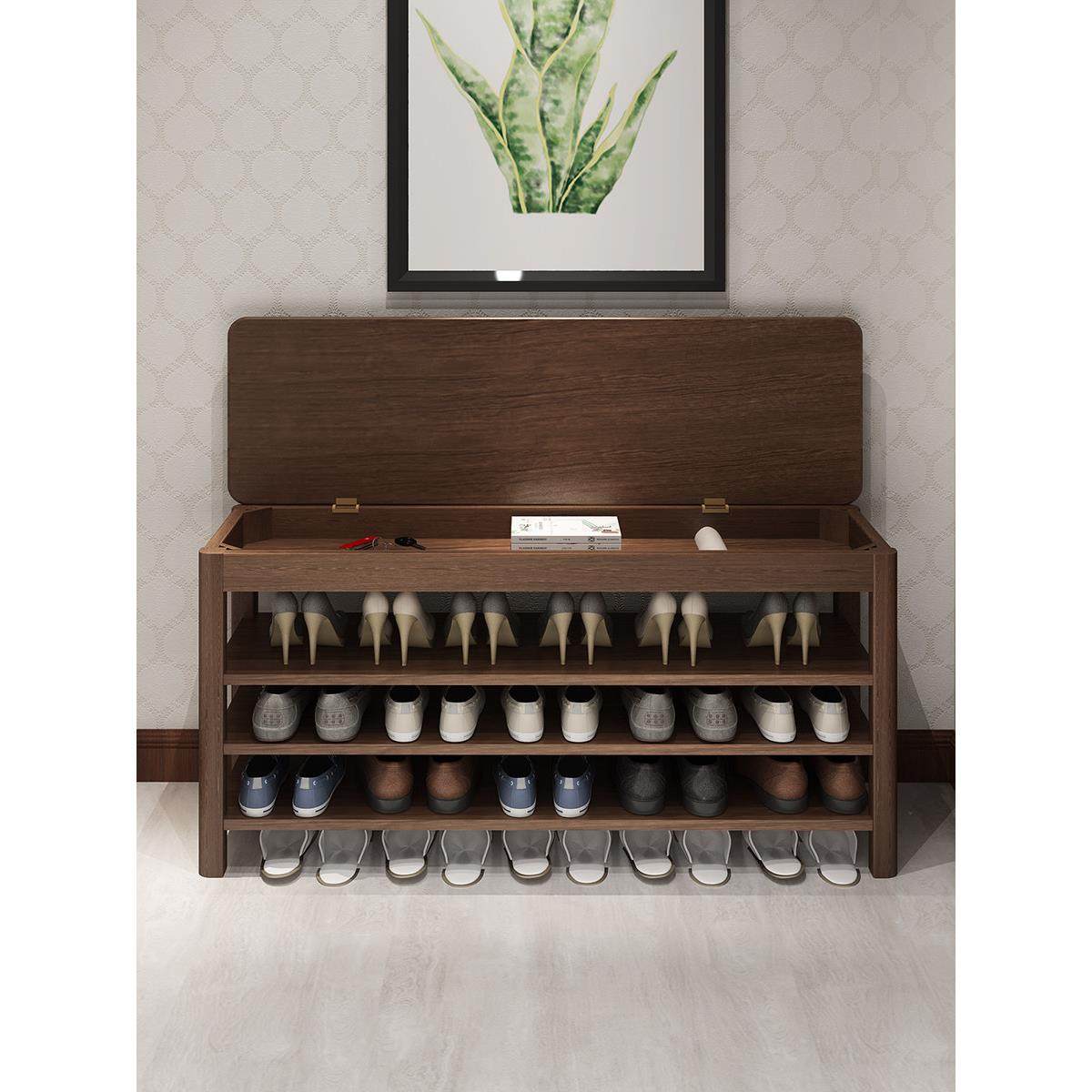 家逸实木换鞋凳家用门口穿鞋凳子轻奢玄关入户鞋柜一体可坐可收纳