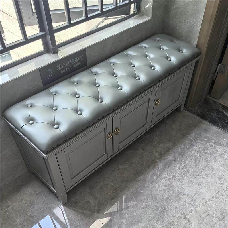 美式实木换鞋凳鞋柜储物欧式鞋凳式穿鞋凳真皮沙发凳门口收纳鞋架