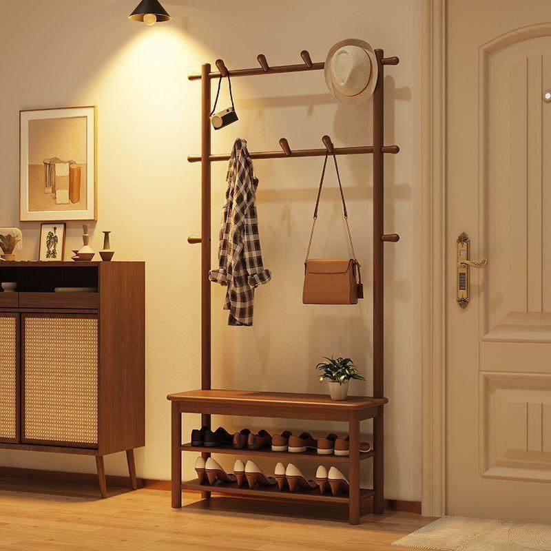 实木换鞋凳鞋柜带挂衣架一体衣架落地卧室家用入户门口玄关衣帽架
