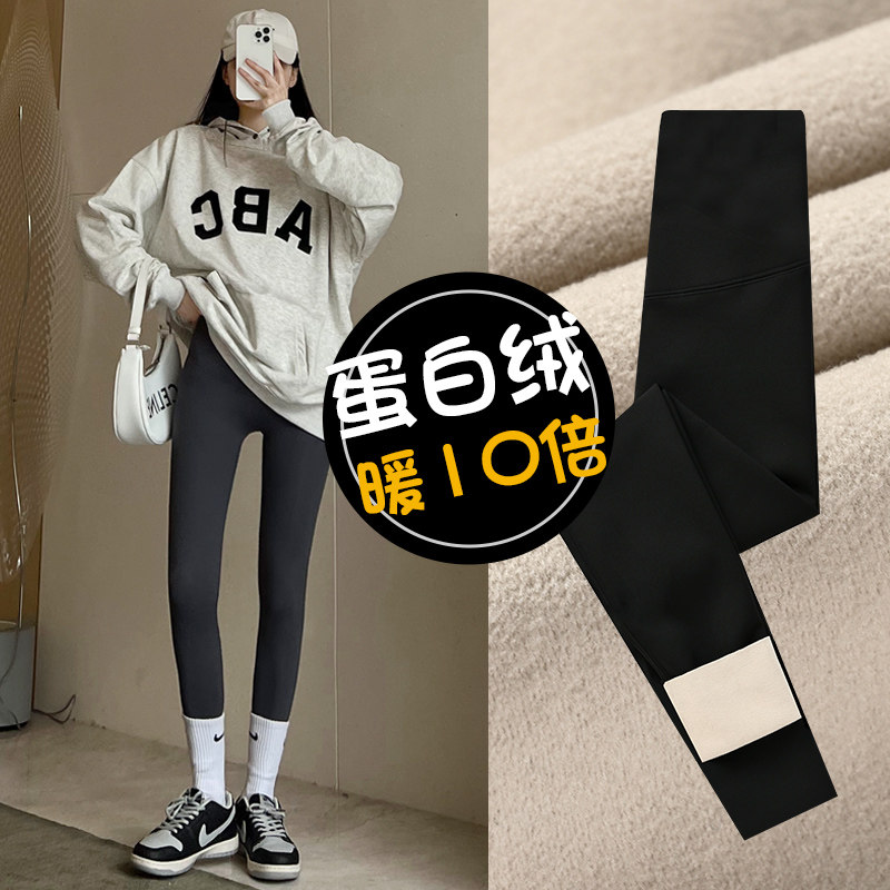 秋冬季加绒加厚打底裤女外穿高腰踩脚显瘦紧身九分大码保暖棉裤袜