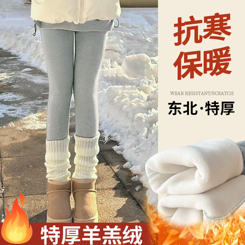 特厚打底裤女外穿秋冬季云感羊羔绒东北弹力紧身秋裤保暖棉裤线裤