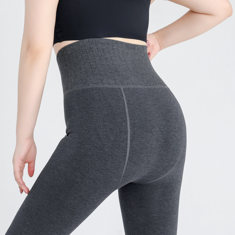 加绒打底裤女外穿灰色秋冬新款高腰螺纹加厚棉裤秋裤高弹力保暖裤