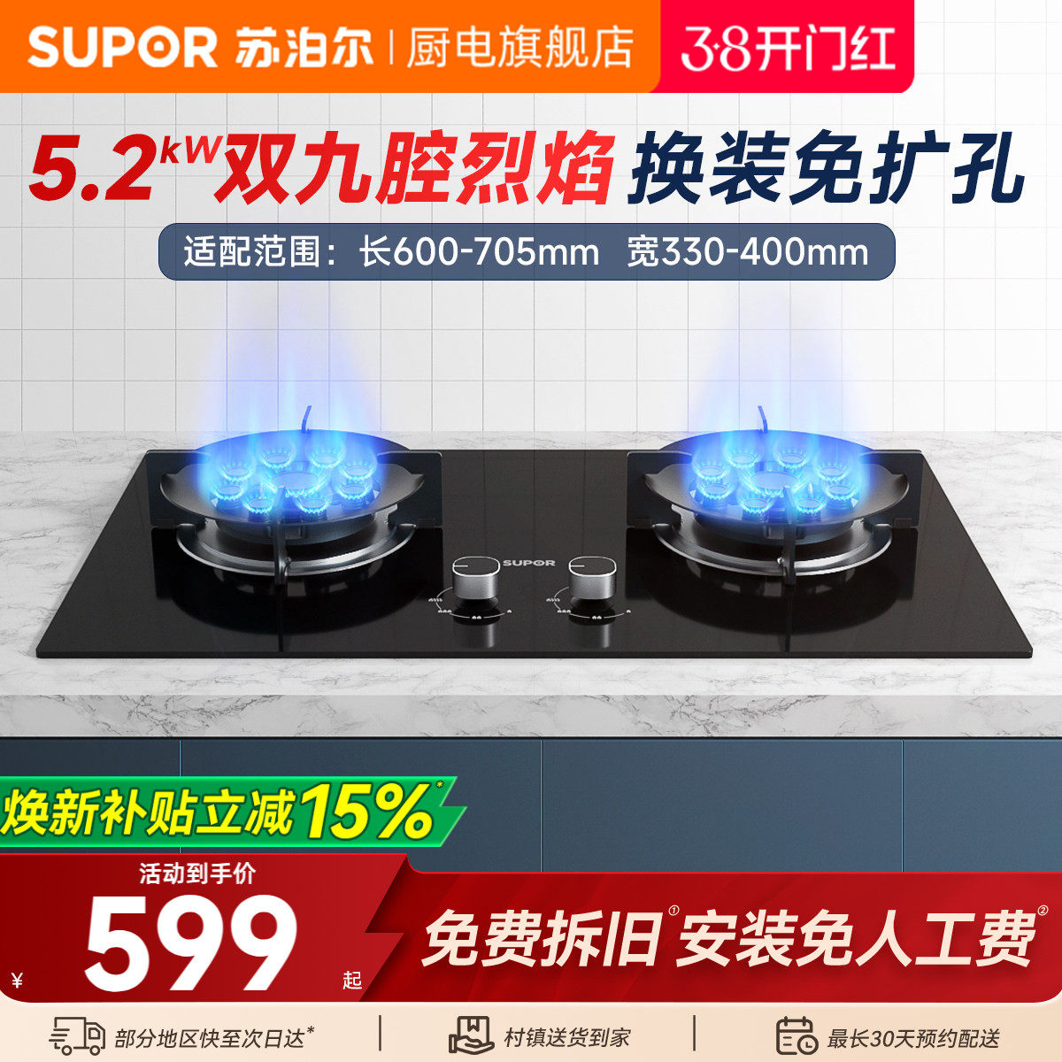苏泊尔燃气灶双灶家用煤气灶天然气炉灶具液化气灶台嵌入式猛火灶
