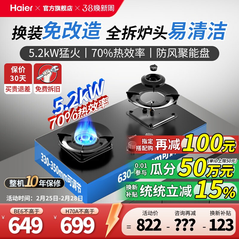 海尔燃气灶家用嵌入式天然气双灶H70A煤气灶液化气官方旗舰Q2BE6