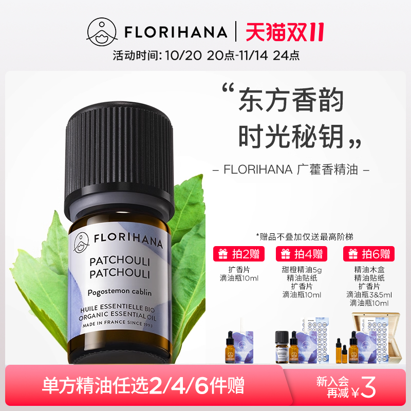 Florihana法国F家广藿香精油植物单方精油香薰痘痘肌养肤痘印按摩