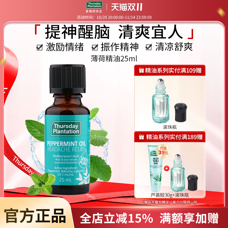 星期四农庄澳洲天然薄荷精油 植物精油香薰清凉提神醒脑身体面部