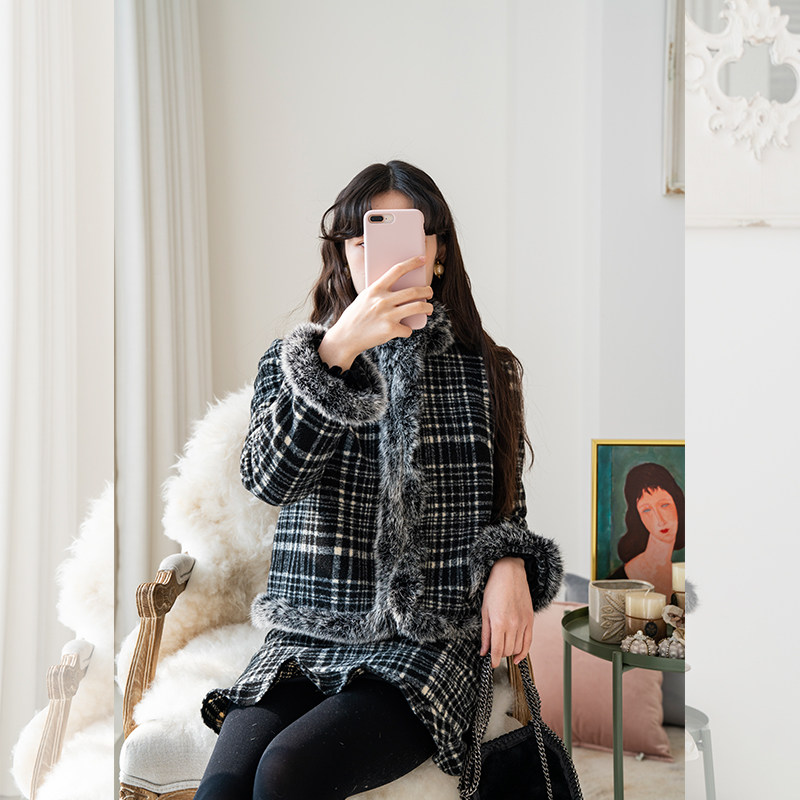 赫本风小个子呢子大衣原创冬新款流行加厚兔毛外套女短款毛呢套装