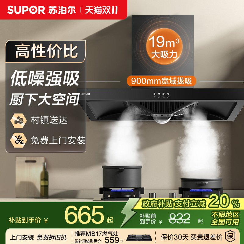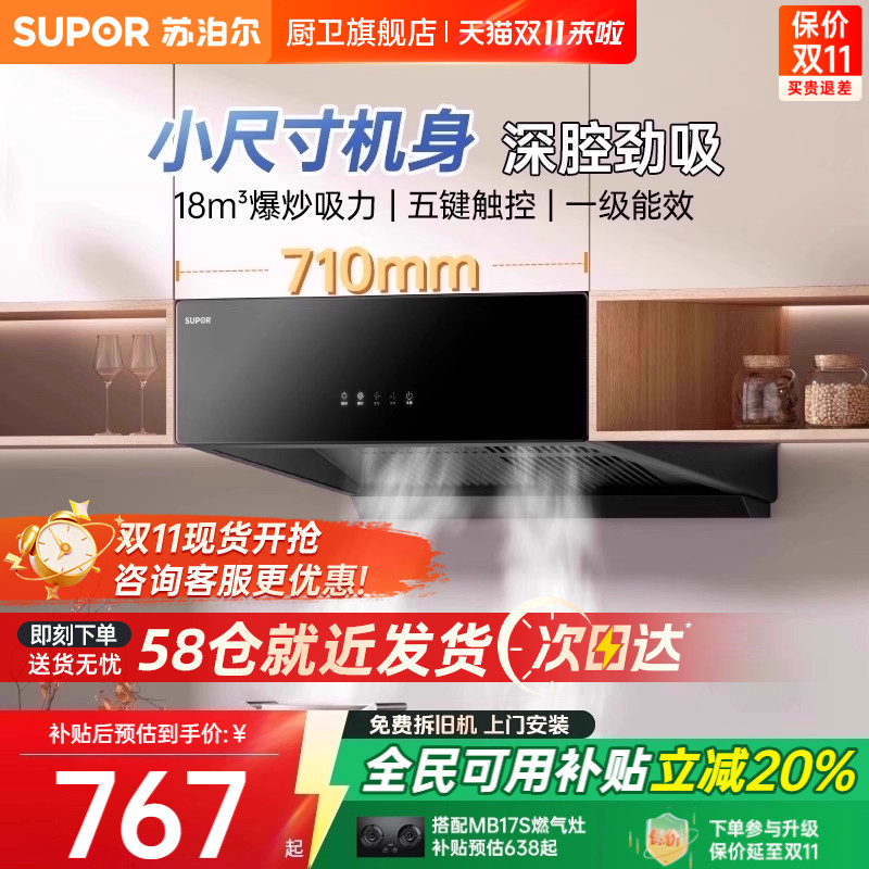 苏泊尔MZ11中式油烟机家用厨房抽吸油排烟机小尺寸大吸力防倒灌