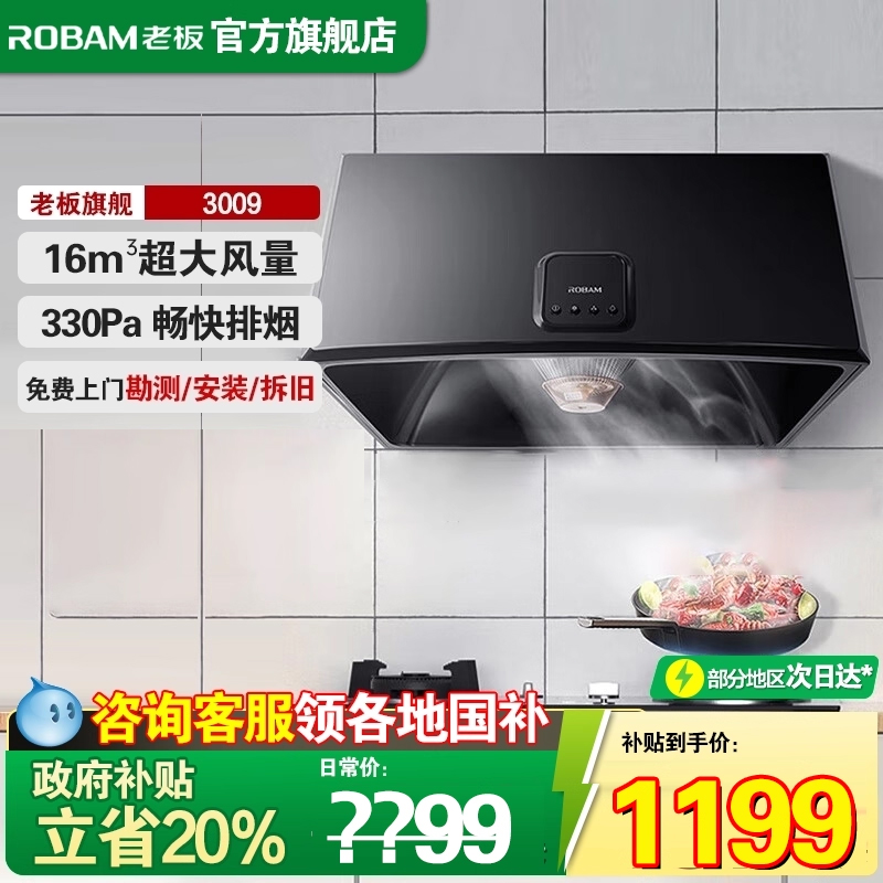 【官方正品】老板中式油烟机3009家用大吸力免拆洗老式脱排出租房