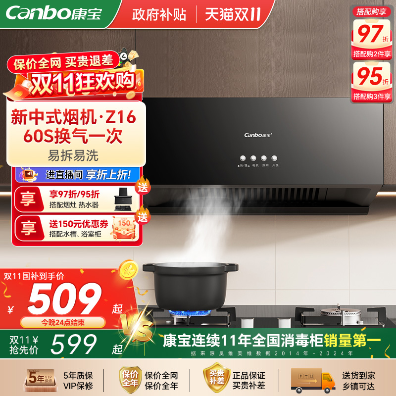康宝Z16新款中式抽油烟机直吸壁挂式家用低噪音高效节能大风量