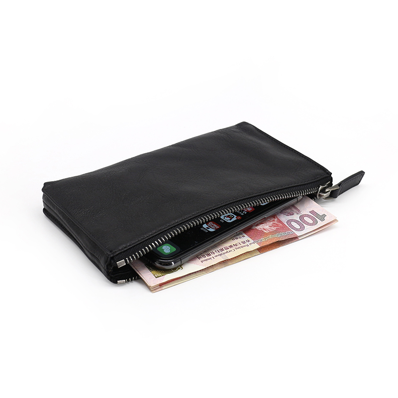 日韩原创植鞣革手机包女头层牛皮拉链长款零钱包复古真皮收纳袋男