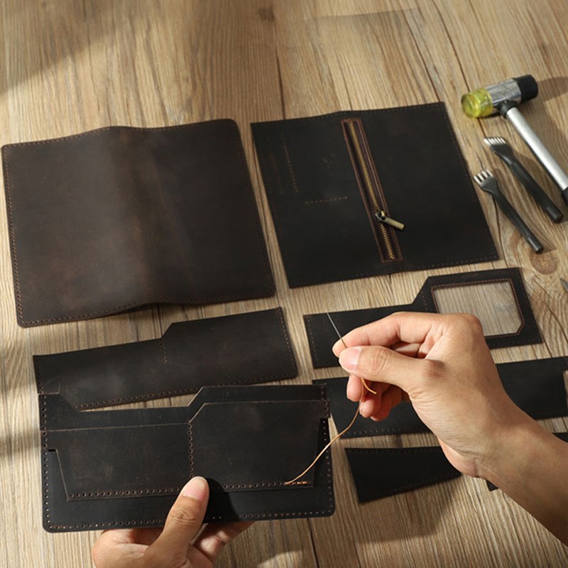 手工钱包男式长款日韩青年钱夹真皮 头层牛皮 复古钱包 DIY材料包