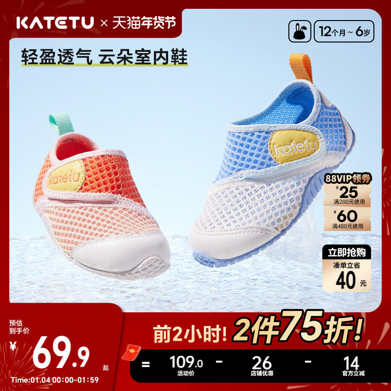 卡特兔童鞋2024新款夏季宝宝透气机能鞋男童网面室内鞋女童凉鞋