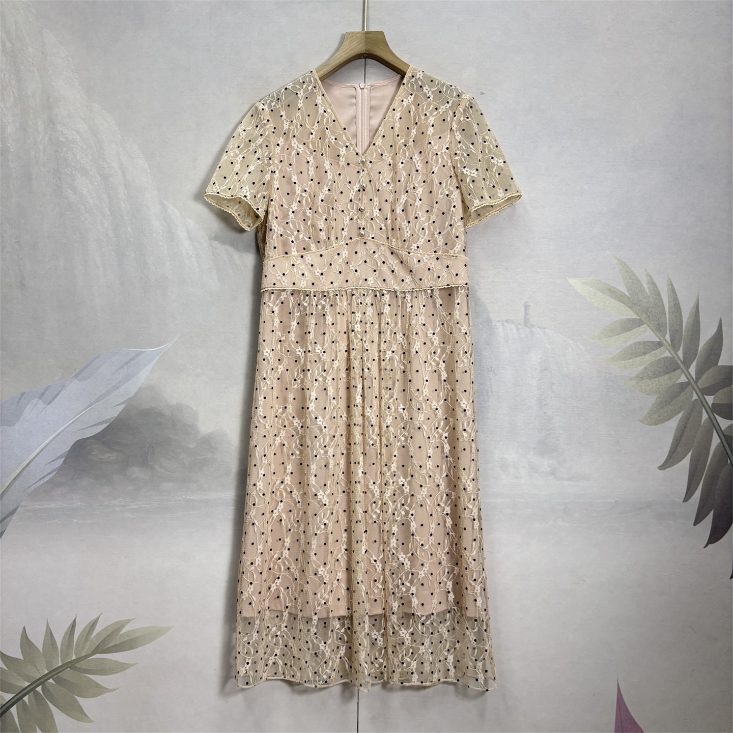S家~高贵气质蕾丝短袖连衣裙26新年轻时尚中长气质百搭中长裙女