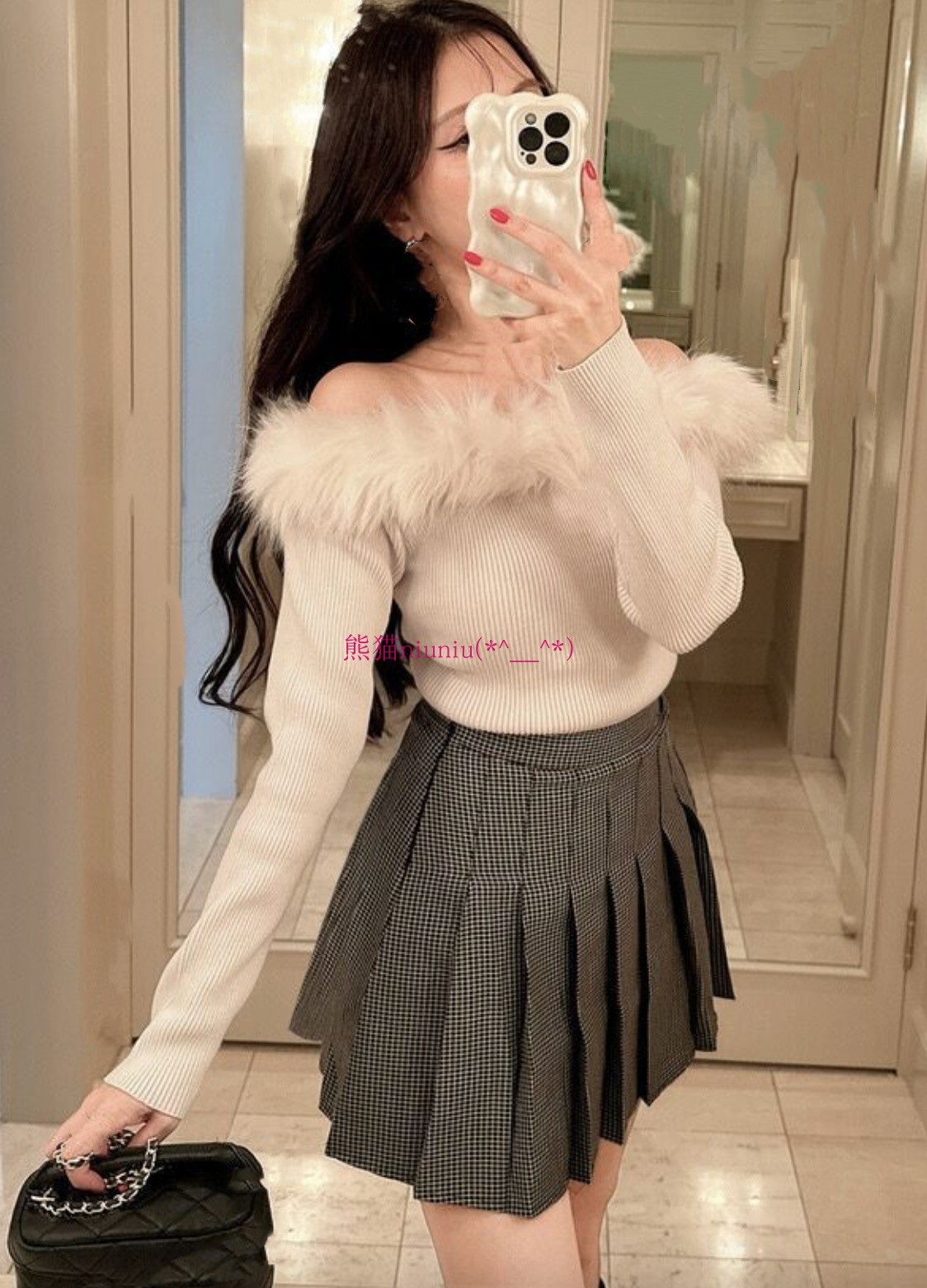 日式少女!S家秋冬新品 荷叶边拼接假两件弹力打底针织套头衫上衣