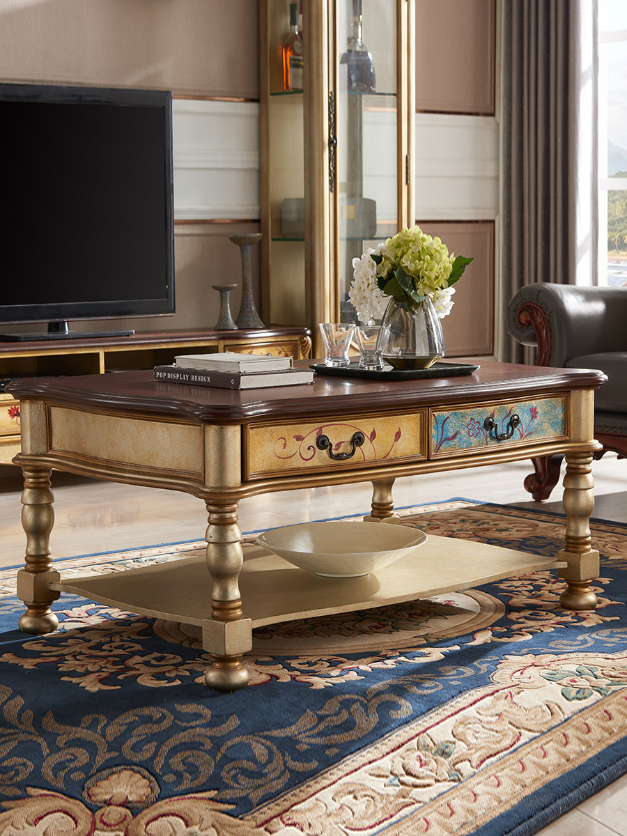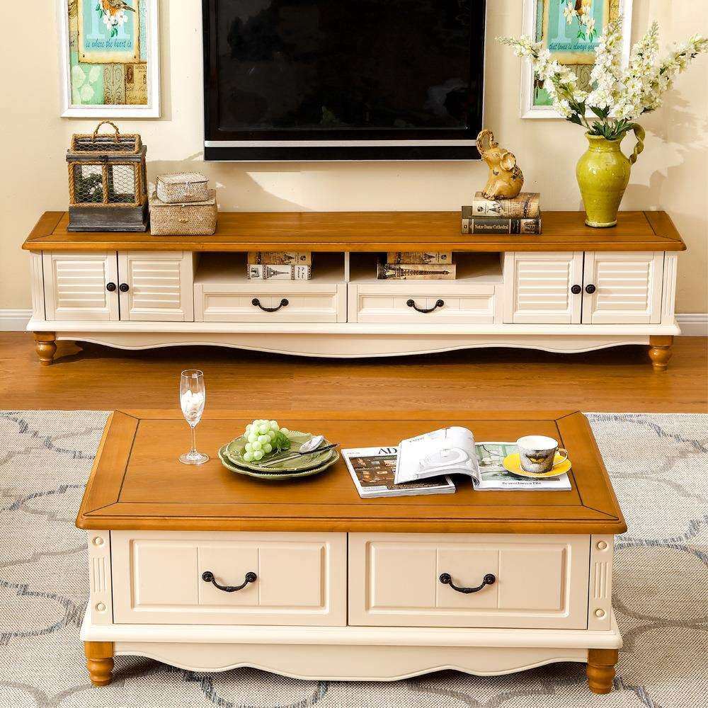 地中海美式乡村全 实木茶几电视柜组合客厅多抽屉家用小户型茶桌