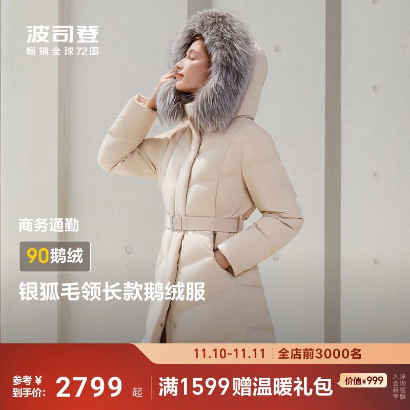 波司登冬季新款长款经典商务羽绒服女款90鹅绒银狐毛领气质显瘦