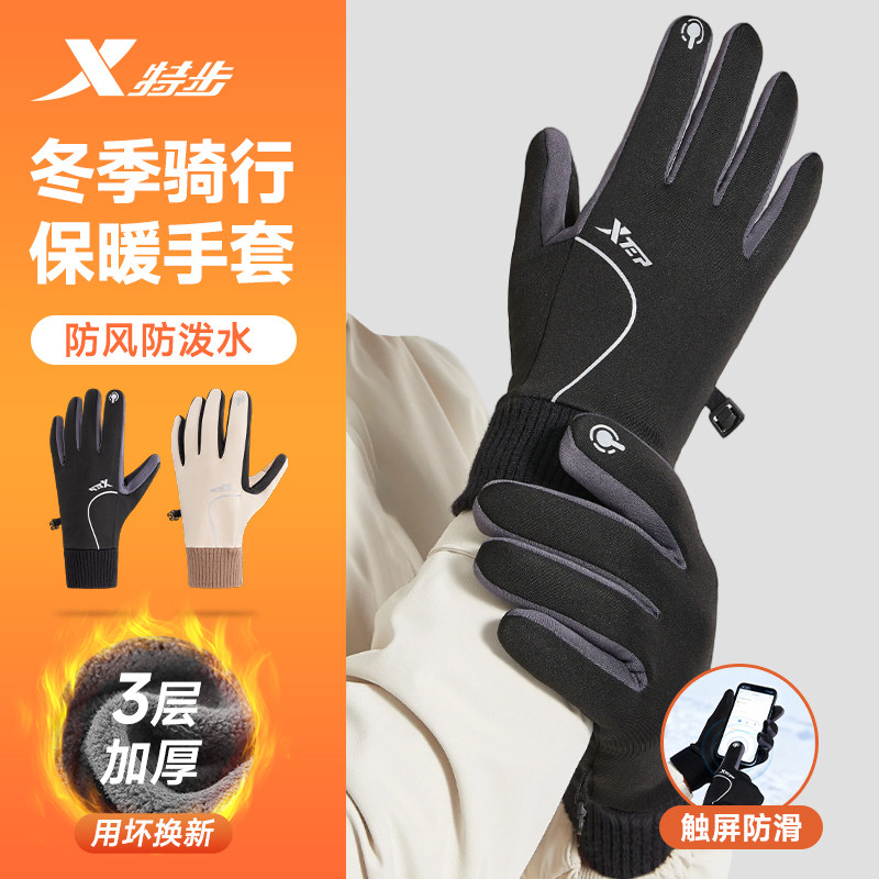 特步骑行手套男士冬季保暖防风御寒户外自行车跑步运动女开车触屏