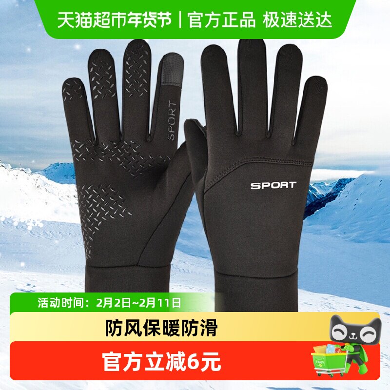 塔斯队长秋冬季跑步骑行手套男触屏防寒抓绒户外运动防滑耐磨女款