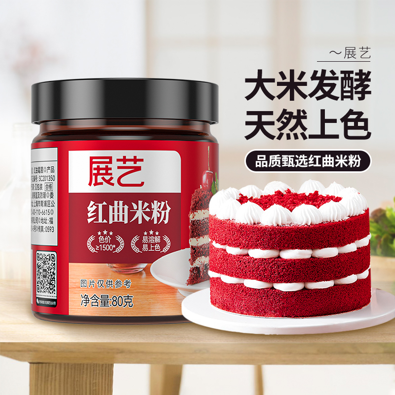 展艺红曲粉烘焙红丝绒蛋糕天然红曲米粉食用色素香肠卤味食用色素