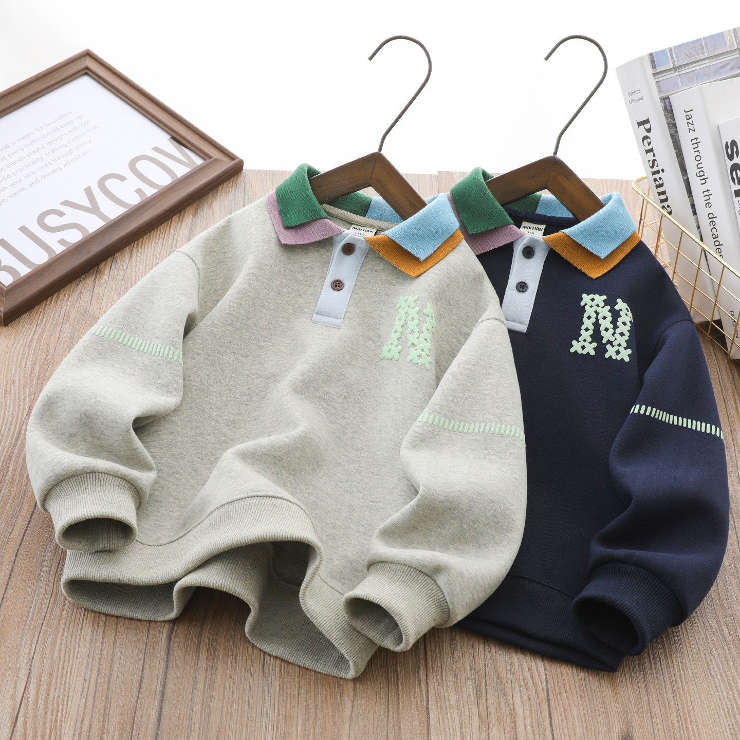 男童卫衣春秋韩版休闲中大童运动百搭男孩帅气撞色假两件衣领上衣