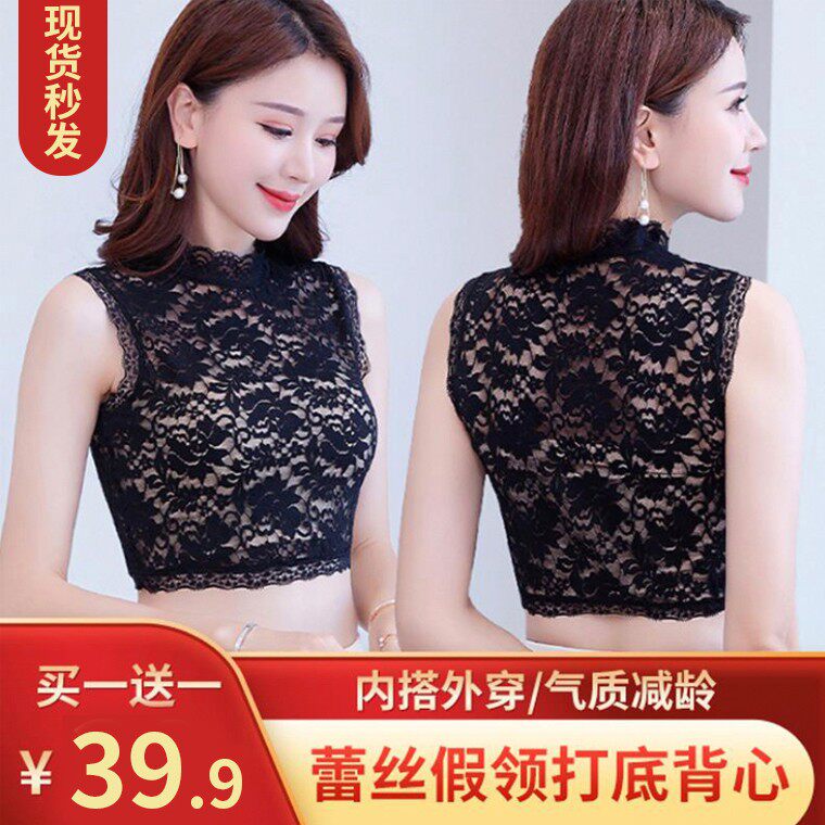买一发二】蕾丝花边假领打底背心 不起球不勾丝 春秋百搭高弹力