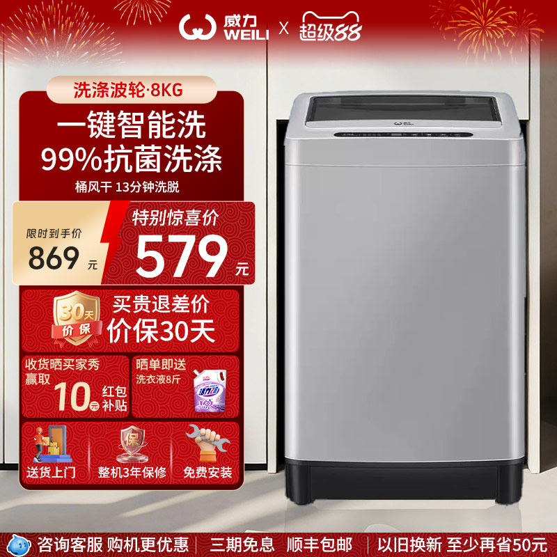 [以旧换新]威力8公斤波轮洗衣机全自动家用迷你小型出租屋公寓用