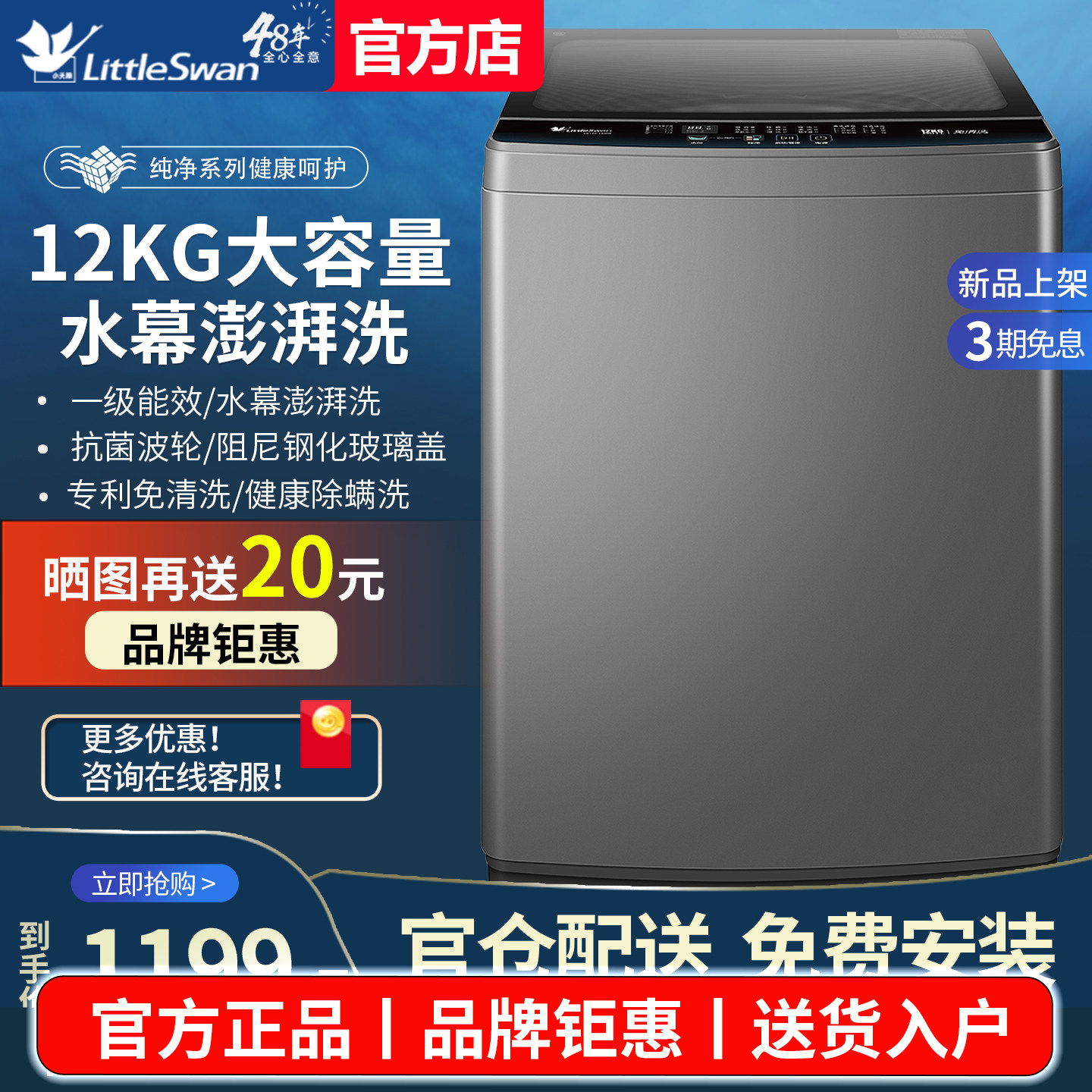 换新补贴小天鹅8公斤10/12KG全自动大容量波轮家用洗衣机变频一级