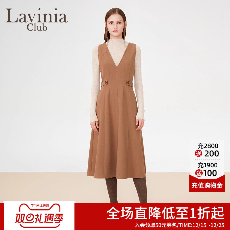 Lavinia 秋新款v领无袖连衣裙女简约气质纯色打底马甲背心裙
