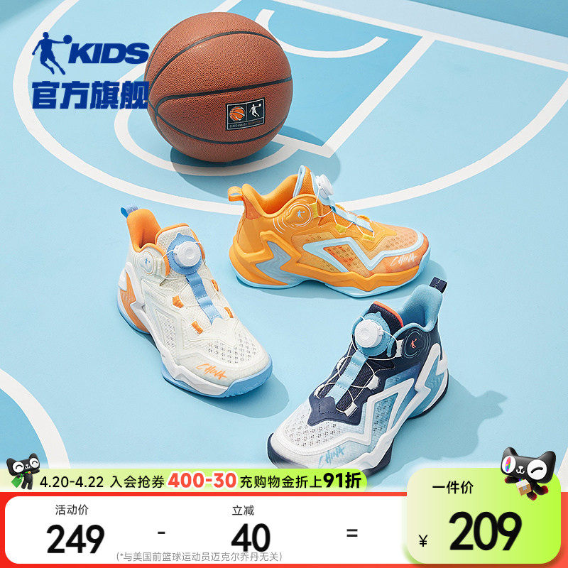 乔丹男童篮球鞋网面透气2026夏季新款小学生旋钮扣战靴儿童运动鞋