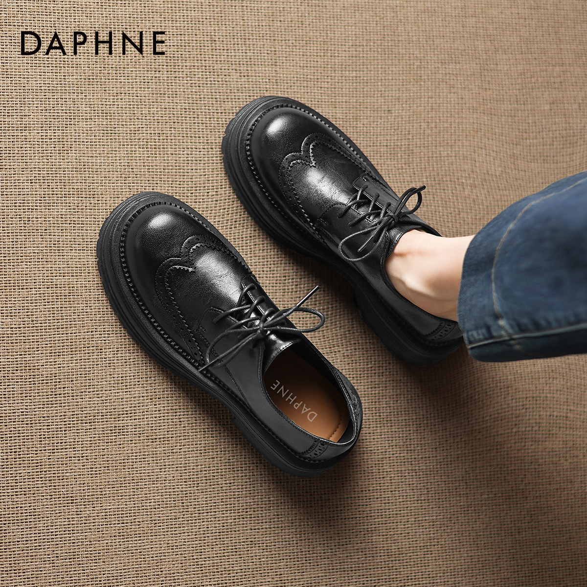 达芙妮厚底乐福鞋女2025新款春夏女鞋黑色小皮鞋布洛克鞋大头单鞋