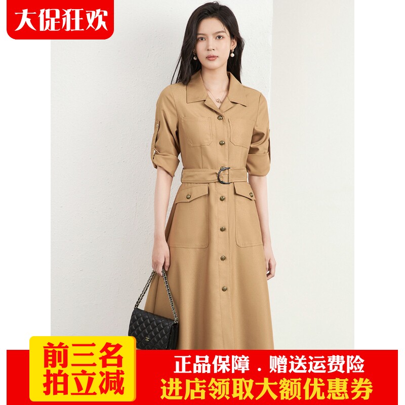 欧洲站2026新款女夏夏连衣裙 时尚衬衫裙通勤OL白领 显瘦收腰遮肚
