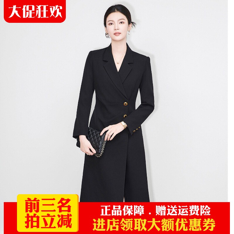 欧洲站2025秋冬新款气质通勤OL职业都市精英修身长袖西装连衣裙正