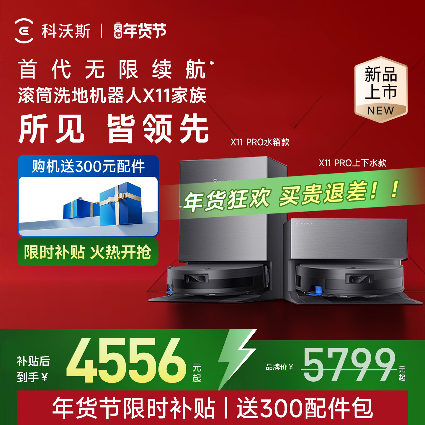 【年货补贴】科沃斯X11扫地机器人扫拖一体家用全拖地扫地吸尘