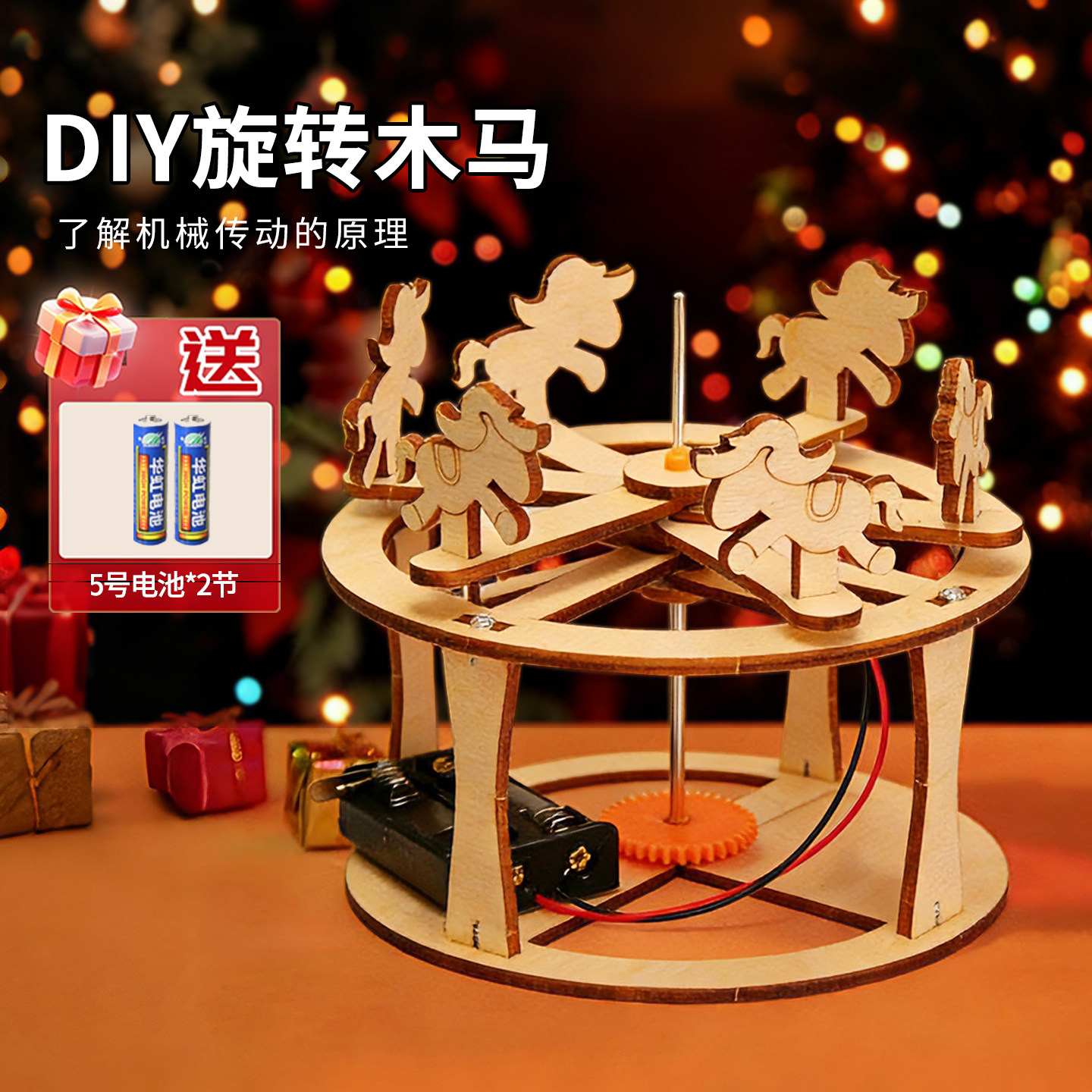 科学小实验木质旋转木马手工DIY儿童学生益智早教玩具实验材料包