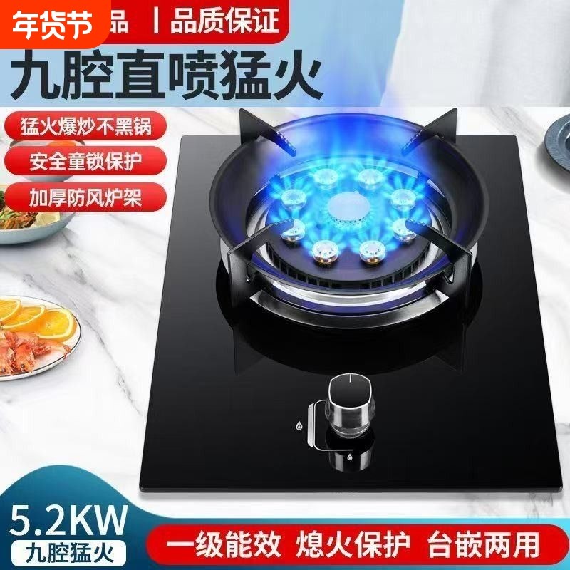 燃气灶单灶台式煤气天然气灶家用不锈钢液化气定时九腔猛火嵌入式