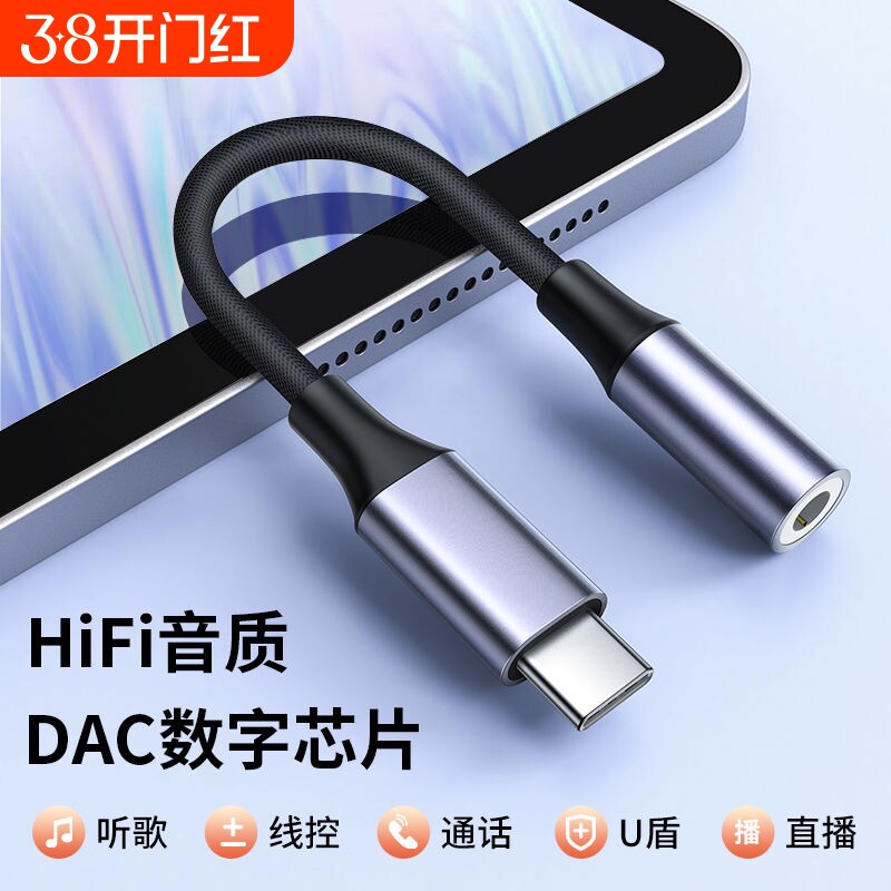 typec耳机转接头转换头适用于华为vivo小米荣耀苹果15/16手机typec转3.5mm音频圆孔转换器转typec接线转接口