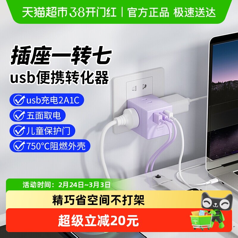 图拉斯小云团插座插排插线板USB多功能用桌面扩展充电插位转换器