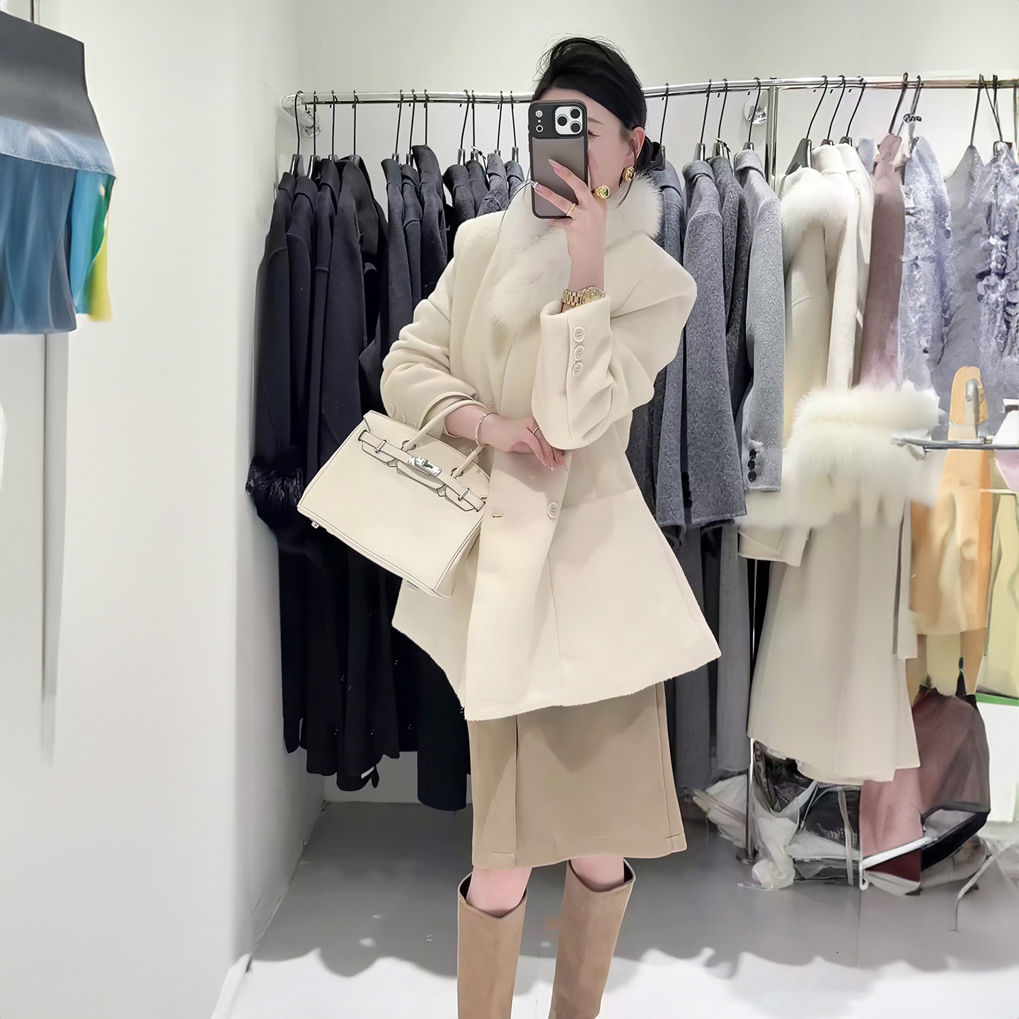 雪初晴~双面羊绒大衣中长款狐狸毛领毛呢外套女温柔2024秋冬新款