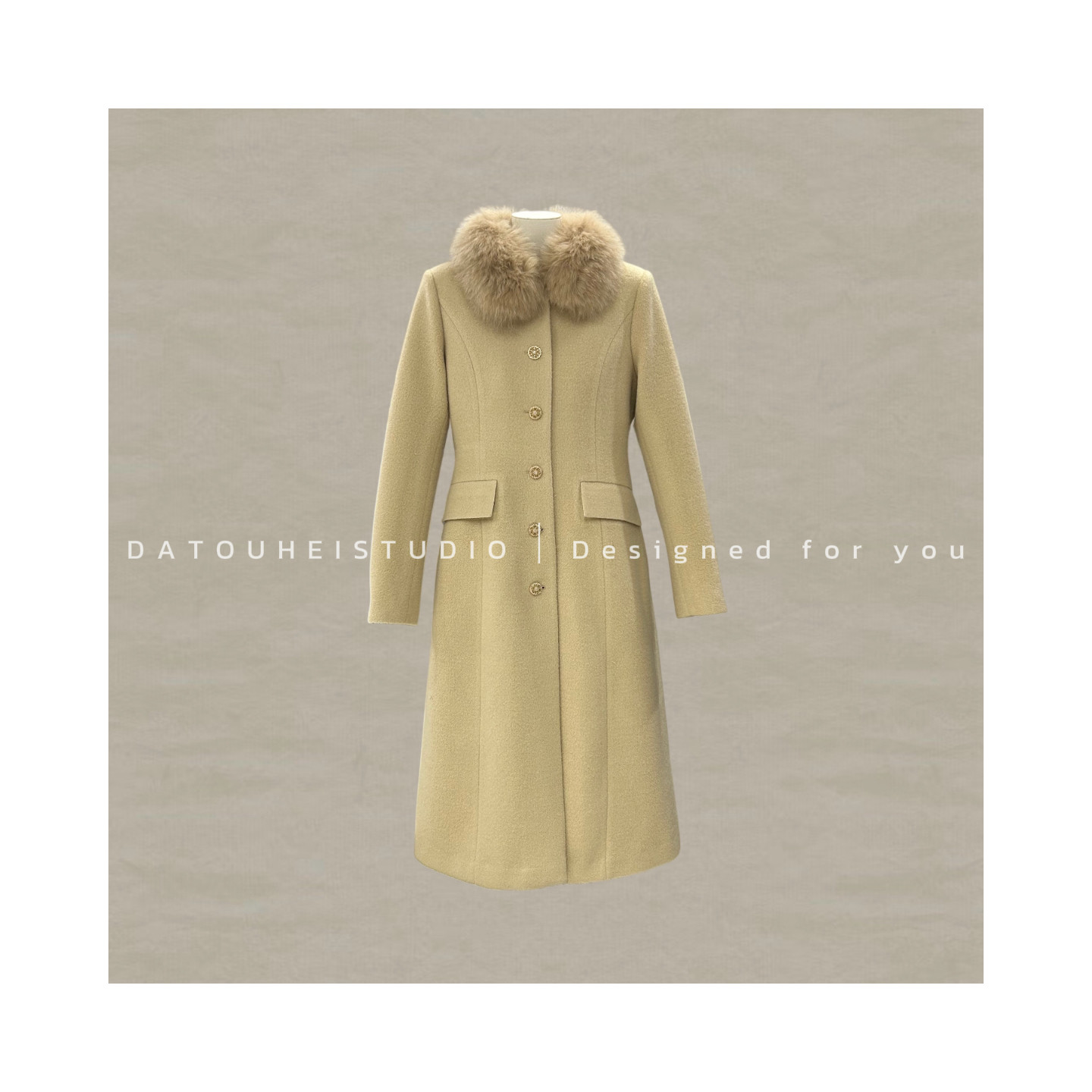 【大头黑自制 秋冬新品】“都市印记"狐狸毛领毛呢外套女气质大衣